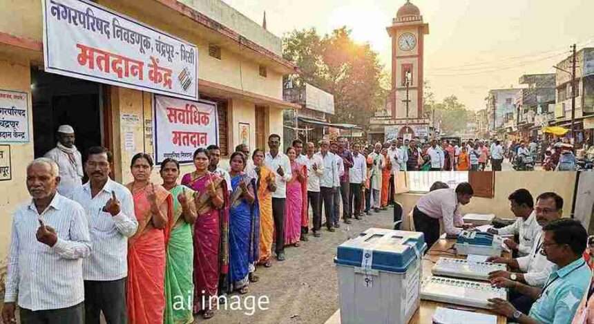 चंद्रपुर जिले में नगरपरिषद चुनाव : 226 उम्मीदवारों का भाग्य EVM में बंद, भिसी में सबसे अधिक मतदान