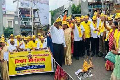 मराठा समाज को कुणबी प्रमाणपत्र देने के फैसले पर ओबीसी समाज भड़का, शासन निर्णय की होली जलाकर जताया विरोध