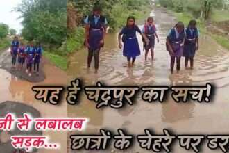 चंद्रपुर में बरसात ने खोली विकास की पोल: सड़क गायब, पानी से लबालब गड्ढे…