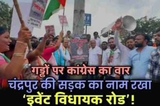 चंद्रपुर में गड्ढों पर राजनीति गरमाई: कांग्रेस का विधायक पर तंज, नाम रखा ‘इवेंट MLA मार्ग’”