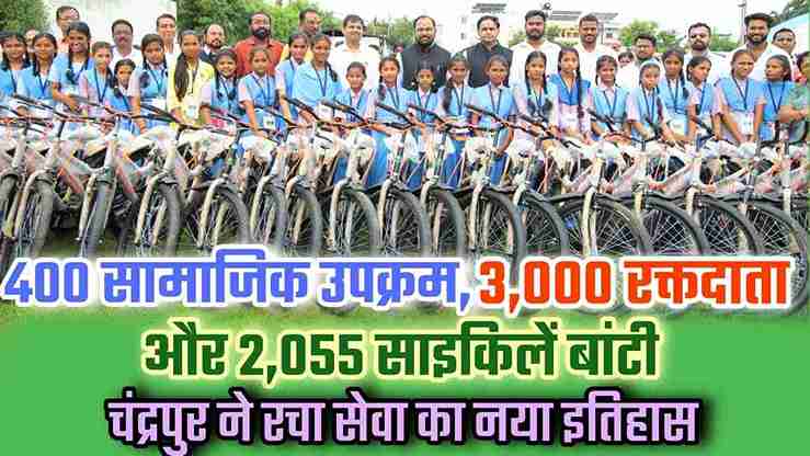 #ChandrapurNews #KishorJorgewar #BicycleDistribution #GuruSamman #JanKalyanSevaSaptah #StudentWelfare #EducationDrive #BloodDonationCampaign #SocialInitiatives #MaharashtraNews