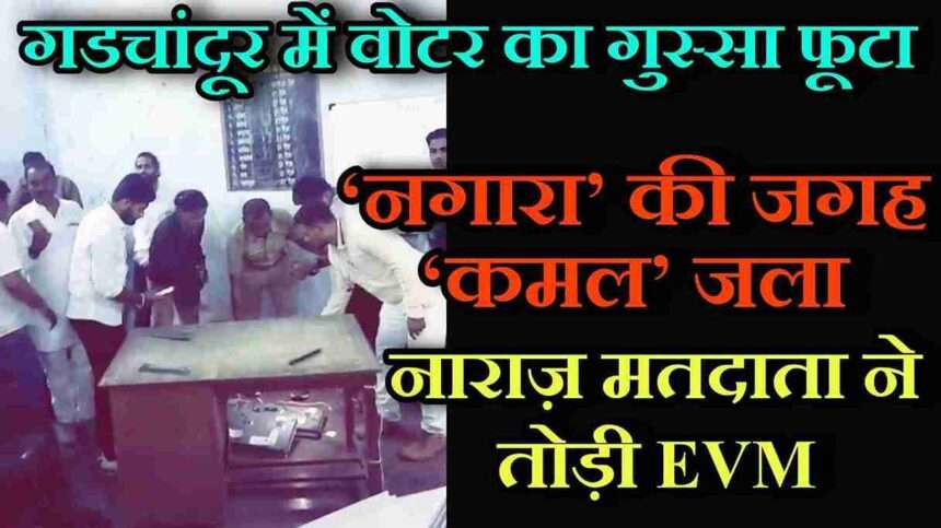 गडचांदूर नगर पालिका चुनाव के दौरान मंगलवार को एक बड़ा और चौंकाने वाला मामला सामने आया, जिसने प्रदेश की चुनावी प्रक्रिया पर गंभीर सवाल खड़े कर दिए हैं। आदर्श हिंदी विद्यालय के बूथ क्रमांक 2 पर सायं 5:20 बजे, मतदाता राम दुर्गे ने जैसे ही नगारा चुनाव चिन्ह का बटन दबाया, मशीन पर कमल प्रतीक की लाइट जल उठी। यह देखते ही मतदान केंद्र में मौजूद लोग हैरान रह गए और मतदाता दुर्गे का गुस्सा फूट पड़ा।