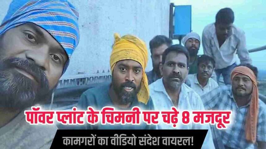 चिमनी पर चढ़े🔍 कामगारों ने सोशल मीडिया पर एक वीडियो जारी किया, जिसमें उन्होंने कहा: