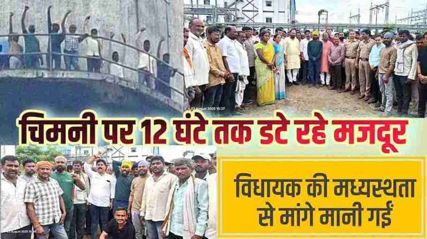 लिखित समझौते के बाद 12 घंटे से चिमनी पर डटे मजदूर सुरक्षित नीचे उतरे और आंदोलन समाप्त हुआ।