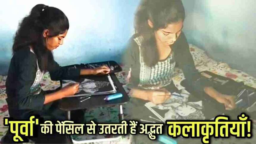 आज पूर्वा B.Com की छात्रा है, लेकिन उसके हाथों में अब भी वही सृजनात्मक जादू है। सबसे खास बात यह है कि वह बहुत साधारण साधनों—जैसे टूटी पेंसिल, स्केचपेन या मामूली कागज़—से असाधारण चित्र तैयार करती है।