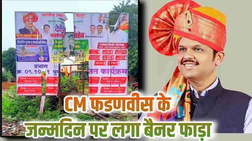 CM Devendra Fadnavis birthday hoarding | भाजपा में बढ़ती गुटबाज़ी की कहानी बयां करता फटा होर्डिंग!