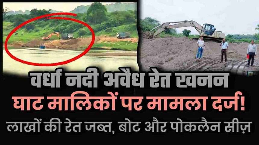 वर्धा नदी अवैध रेत खनन: घाट मालिकों पर मामला दर्ज.., लाखों की रेत जब्त, बोट और पोकलैन सीज़!