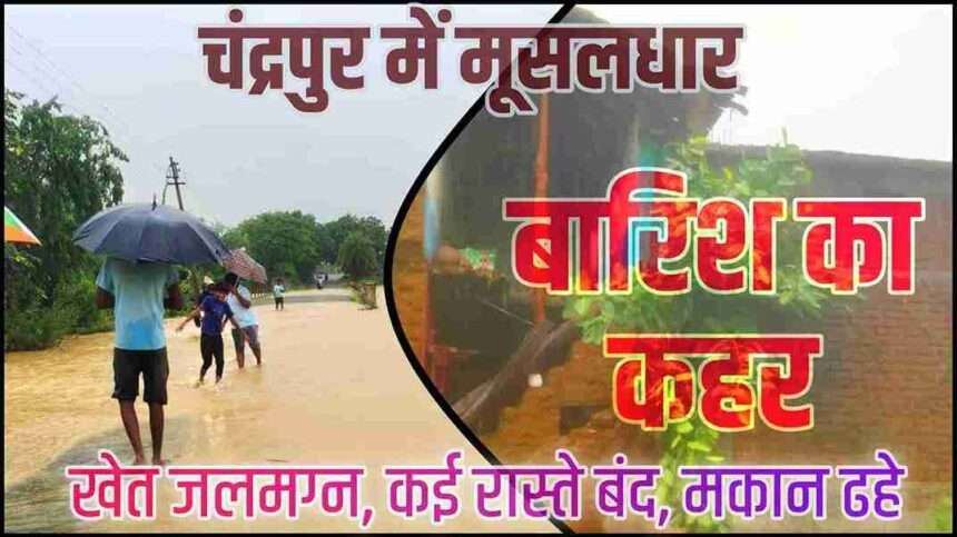 Chandrapur Heavy rainfall | चंद्रपुर में मूसलधार बारिश का कहर: खेत जलमग्न, कई रास्ते बंद, मकान ढहे…