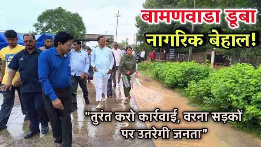 चंद्रपुर ज़िले के राजुरा शहर के पास स्थित बामणवाडा इस समय बुरी तरह जलमग्न है। पिछले 24 घंटों से जारी मूसलाधार बारिश ने स्नेहदीप नगर, स्टेला मैरीस स्कूल और आसपास की बस्तियों को पानी में डुबो दिया है। गलियों और सड़कों पर सिर्फ पानी और कीचड़ का साम्राज्य है, जिससे स्कूली बच्चों और स्थानीय नागरिकों की जान पर बन आई है।