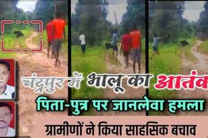 Chandrapur Human Wildlife Conflict | चंद्रपुर में भालू का आतंक : जुनोना में पिता-पुत्र पर जानलेवा हमला, ग्रामीणों ने खदेड़ा – दोनों गंभीर -video viral