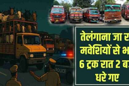 Cattle trafficking | धानोरा फाटे पर आधी रात ट्रैप: तेलंगाना जा रहे 72 मवेशियों से भरे 6 ट्रक पुलिस के शिकंजे में