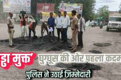 Ghugus Road Safety | बरसाती गड्ढों पर घुग्घुस पुलिस और IVRCL का एक्शन – तबाह सड़कों की शुरू हुई मरम्मत, आमजन को राहत!